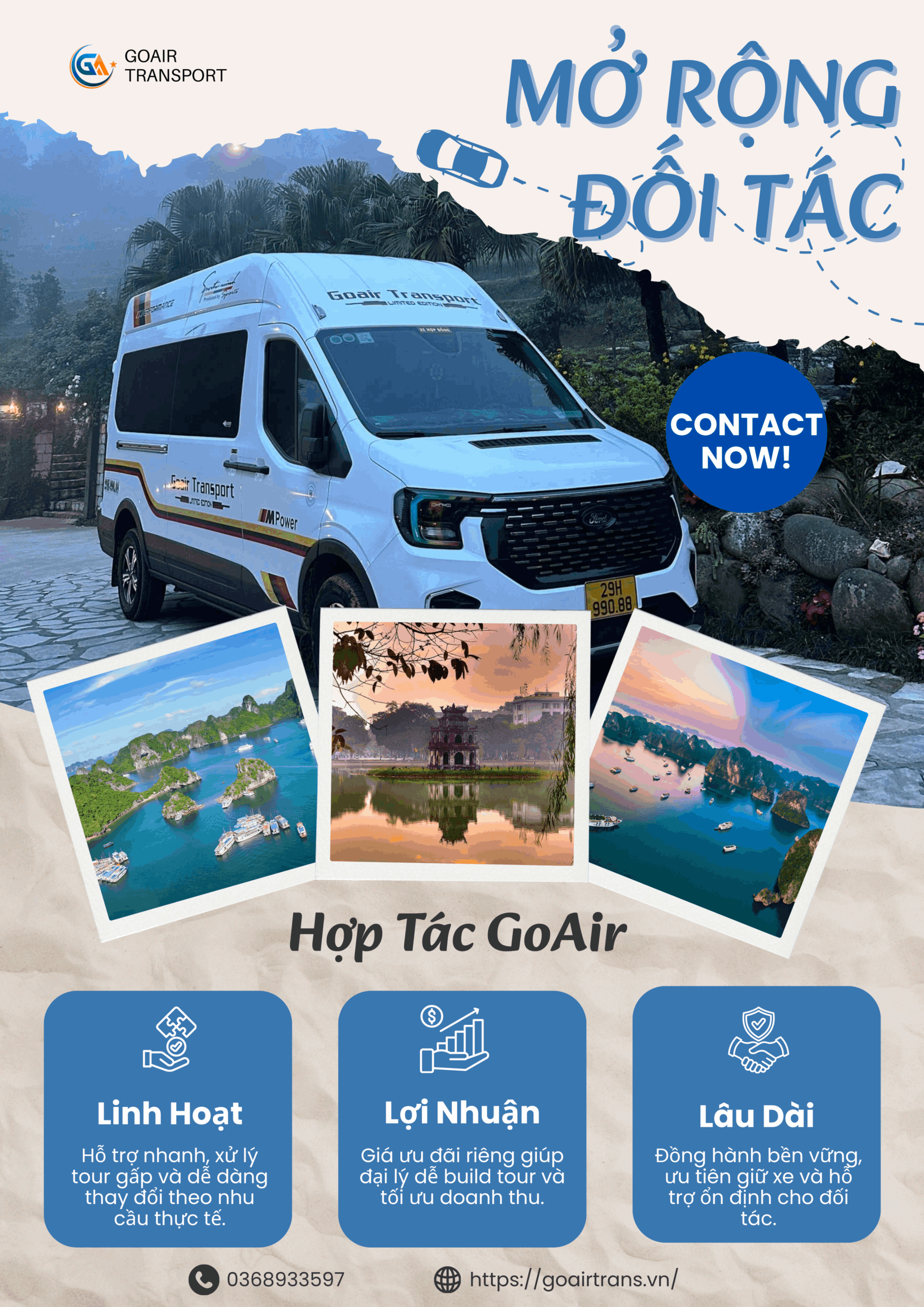 Nếu bạn đang kinh doanh tour, nhận khách đoàn, tổ chức sự kiện hoặc cần tìm đối tác xe du lịch ổn định, GoAir sẽ là lựa chọn phù hợp để đồng hành lâu dài.